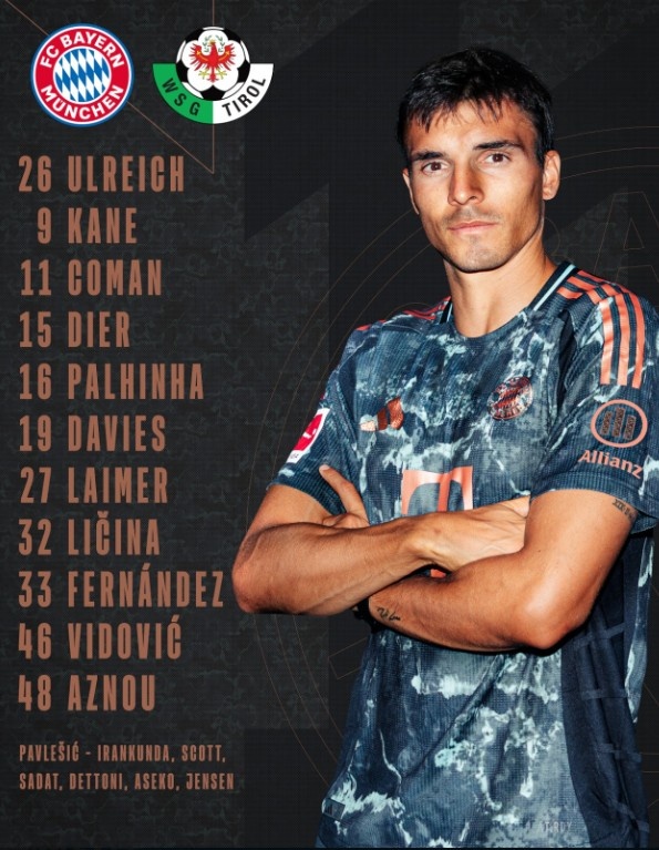 友谊赛拜仁vs华登斯首发:凯恩、帕利尼亚、科曼出战