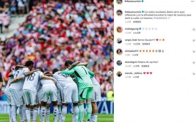 库尔图瓦社媒发文鼓励球队:糟糕的结果应该成为反思自我的契机