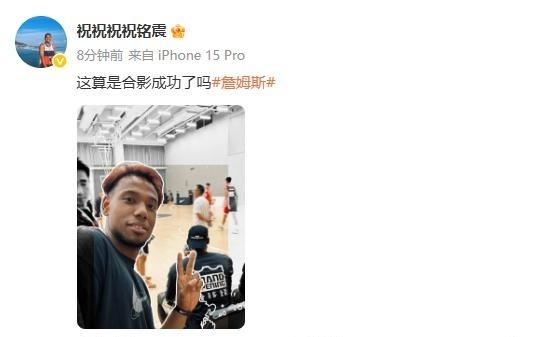 只有背影!祝铭震晒与詹姆斯同框照:这算是合影成功了吗