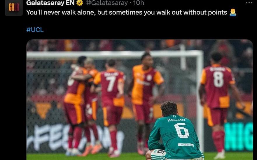 赛后再补刀,加拉塔萨雷:你永远不会独行,但有时会空手而归