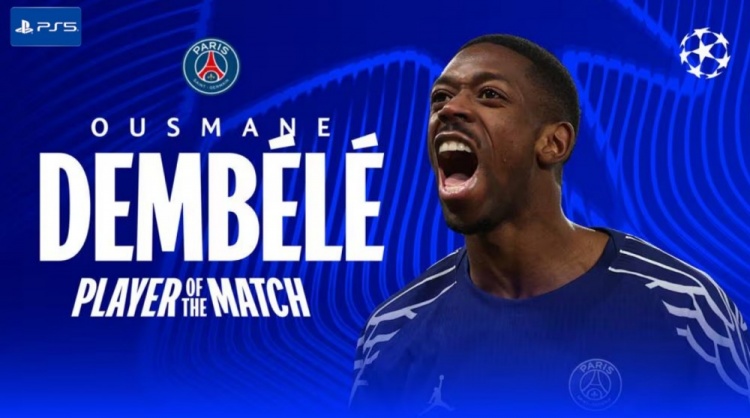 实至名归!登贝莱当选巴黎vs斯图加特全场最佳球员