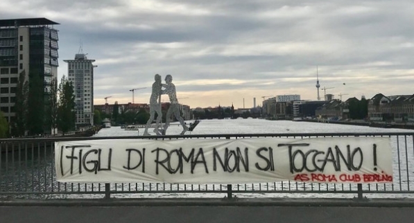 罗马球迷拉横幅支持德罗西:罗马之子不可触碰!